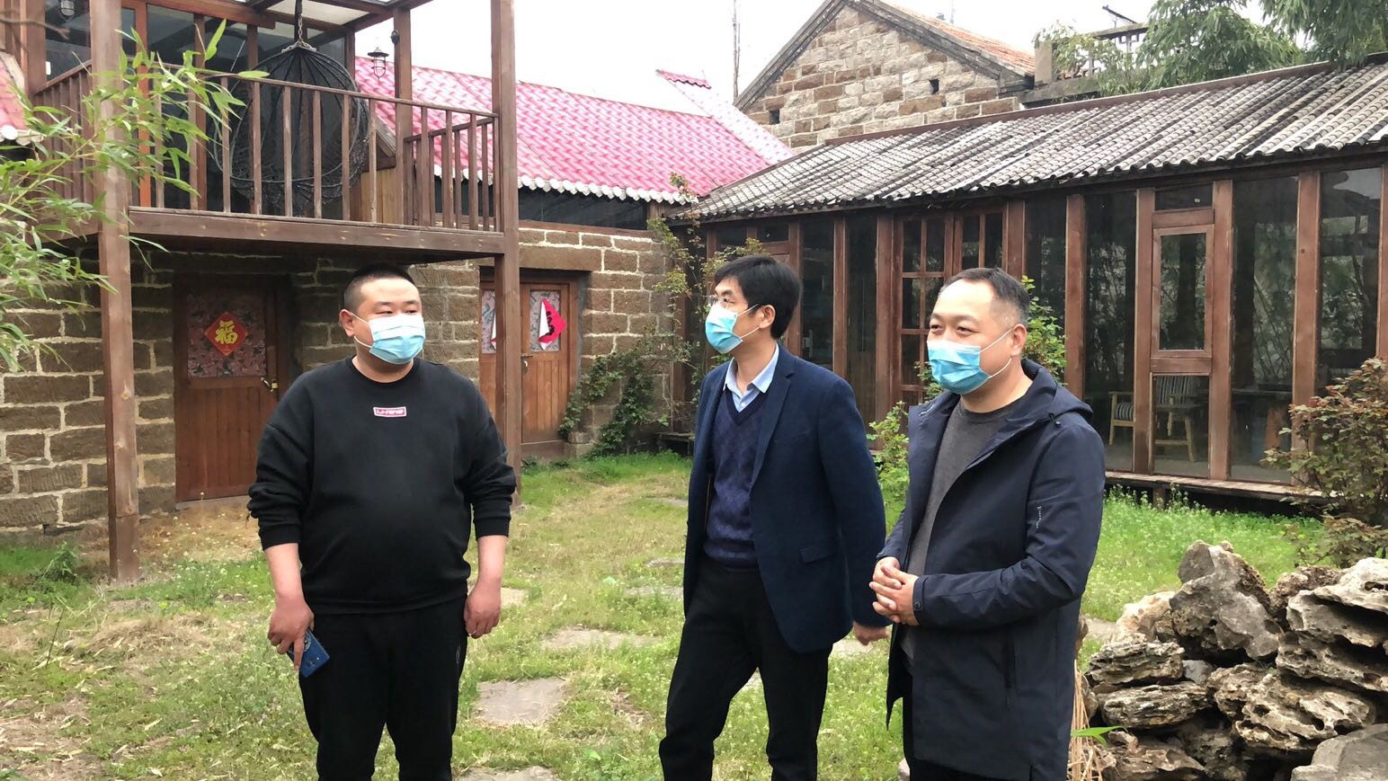 圖為:山亭區(qū)北莊鎮(zhèn)人民政府領(lǐng)導(dǎo)與棗莊市水利開發(fā)有限公司副總經(jīng)理連永、棗莊市水利勘測(cè)設(shè)計(jì)院周明主任踏勘傳統(tǒng)村落項(xiàng)目現(xiàn)場(chǎng)